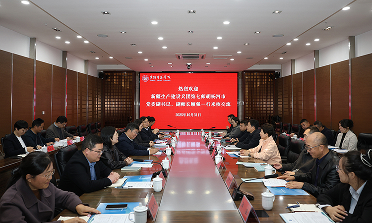 新疆生產(chǎn)建設(shè)兵團(tuán)第七師胡楊河市黨委副書(shū)記、副市長(zhǎng)顧強(qiáng)一行來(lái)校交流